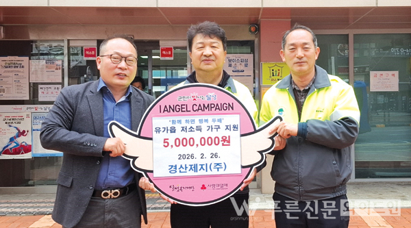 경산제지(주)(대표 김문성)는 지난달 26일(목) 유가읍 행정복지센터에 취약계층 지원을 위한 성금 500만 원을 기탁했다. 경산제지는 앞서 현풍읍에도 500만 원을 전달했다.