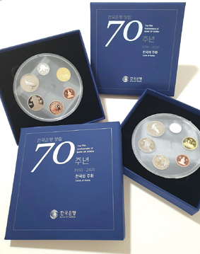 한국은행 70주년을 맞아 특별히 발행된 기념주화는 기존에 사용되고 있는 동전과 달리 특수 가공 처리를 통해 선명도가 높고 엄격한 품질검사를 거쳐 제조된 고품질의 주화이다. 특히 현재는 일반 유통 물량으로 발행하지 않고 있는 1원과 5원짜리 동전을 포함하고 있어 그 가치가 더 높게 매겨진다.