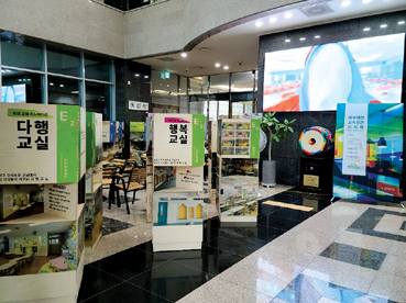 시교육청 동관 1층 로비는 민원실을 이용하는 일반인을 비롯, 각종 행사와 회의에 참여하는 학생, 교직원들이 다녀가는 곳이라 대구교육공간의 변화상을 널리 공유하기에 좋은 조건을 갖추고 있다.