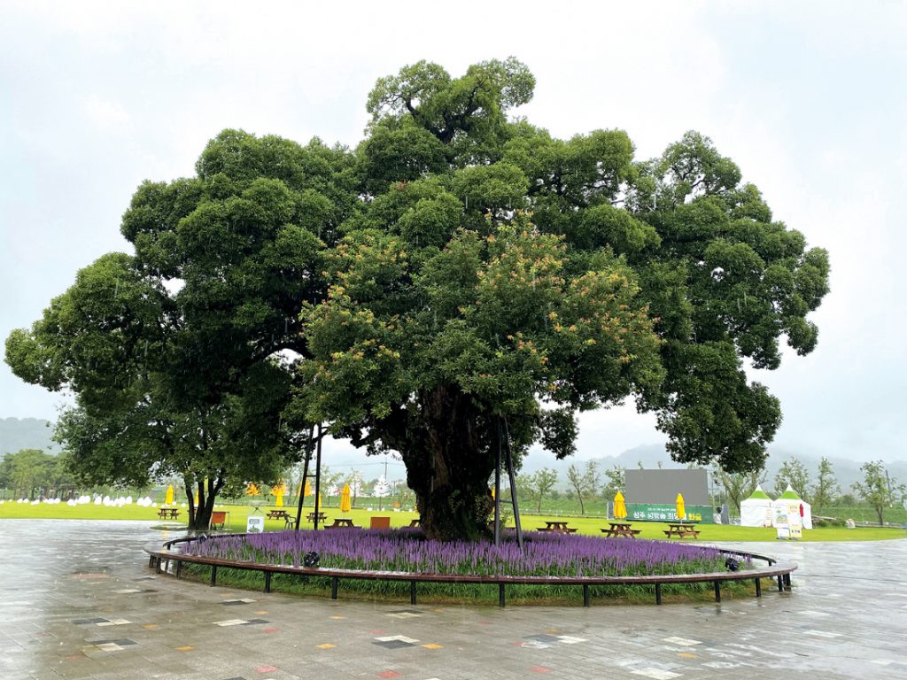 억수같이 쏟아지는 장맛비를 뚫고 취재를 간 곳은 성주 성밖숲. 이미 유명한 곳이지만 8월 이곳이 더욱 핫한 이유는 바로 왕버들 나무 아래에 보랏빛으로 물들고 있는 맥문동 때문.