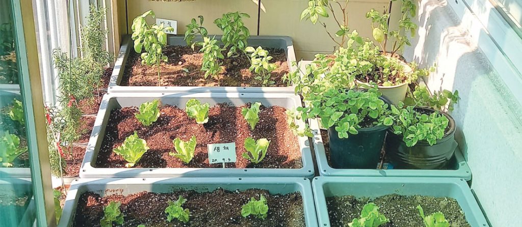 하루가 다르게 커가는 채소들을 보고 있으면 코로나 블루도 사라지고 식탁도 풍성해질 것이다. 직접 기른 싱싱한 상추에 삼겹살 구워 올려먹을 생각하니 벌써 행복해지고 꼴깍 침 넘어가는 소리 들린다.