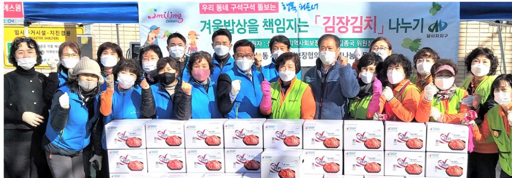 달서구 상인1동행정복지센터(동장 황현구)는 23일 지역사회보장협의체(위원장 김종국)와 행복나눔공동체(위원장 오경여) 주관으로 사랑의 김장 나누기 행사를 추진, 저소득가정 60가구에 김장김치를 전달했다.