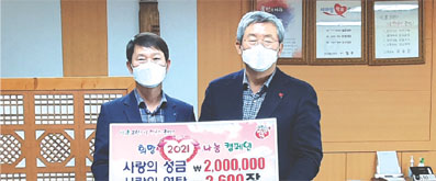 성주군 월항농공단지협의회(회장 김병영)는 10일 ‘희망2021나눔 캠페인’에 적극 동참하며 이웃돕기 성금 200만 원을 월항면사무소에 기탁했다.
