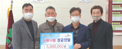 ㈜마루조경 대표 이희병 씨는 9일 읍사무소를 방문해 어려운 이웃을 위해 써달라고 성금 500만 원을 기탁했다.
