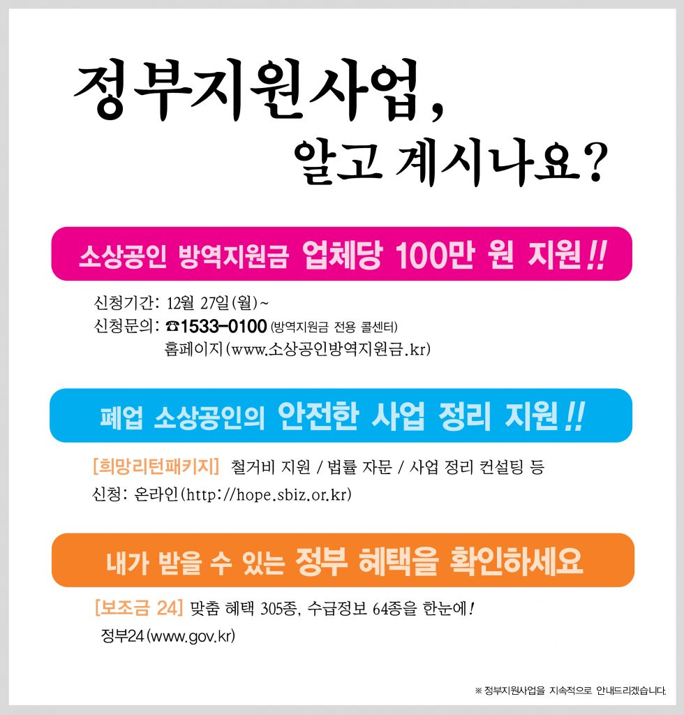 소상공인 방역지원금 업체당 100만원 지원!!!