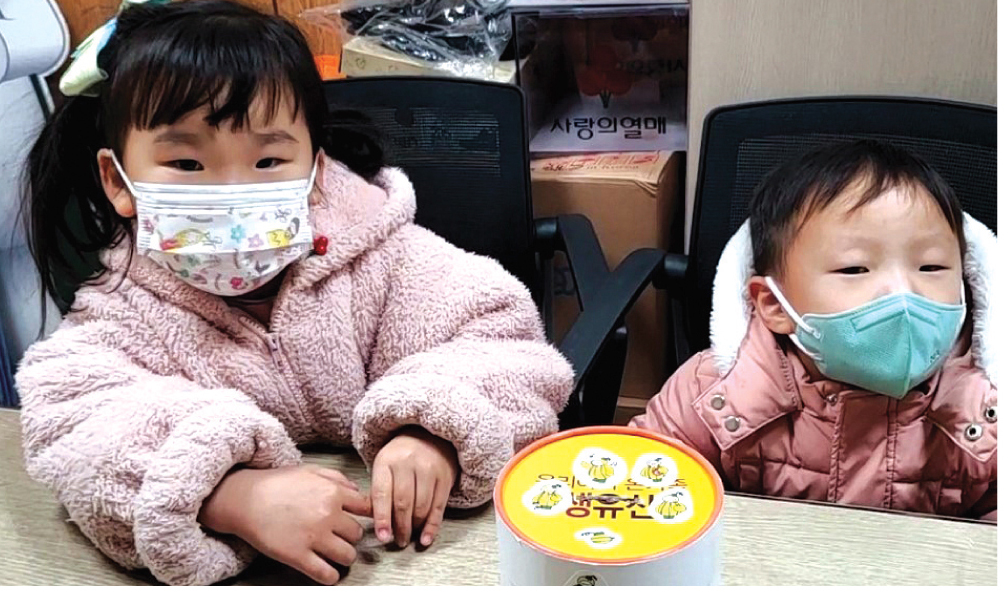 성주어린이집에 다니는 원아 김채원(6살), 김도경(5살) 남매가 지난 19일 성주군청 주민복지과를 찾아와 지난 1년 동안 소중히 모은 용돈 저금통을 전달하면서 훈훈한 분위기를 자아냈다. 참별이 스티커로 가득한 저금통 안에는 만 원짜리 지폐부터 십 원짜리 동전까지 다양하게 들어있었으며, 액수는 약 9만 5,000원으로 손 편지 1장도 함께 있었다.