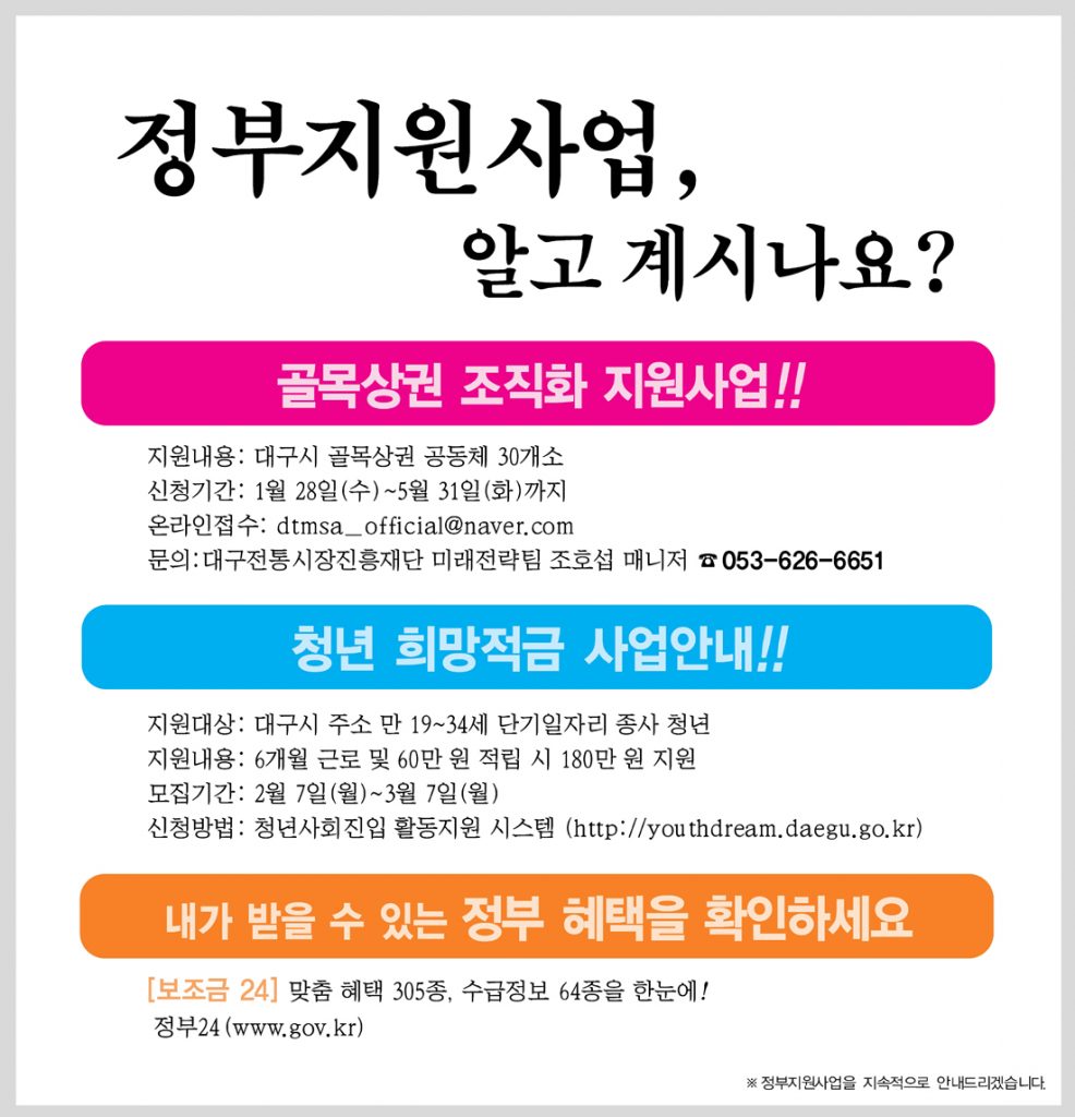 지원내용 : 대구광역시 골목상권 공동체 30개소