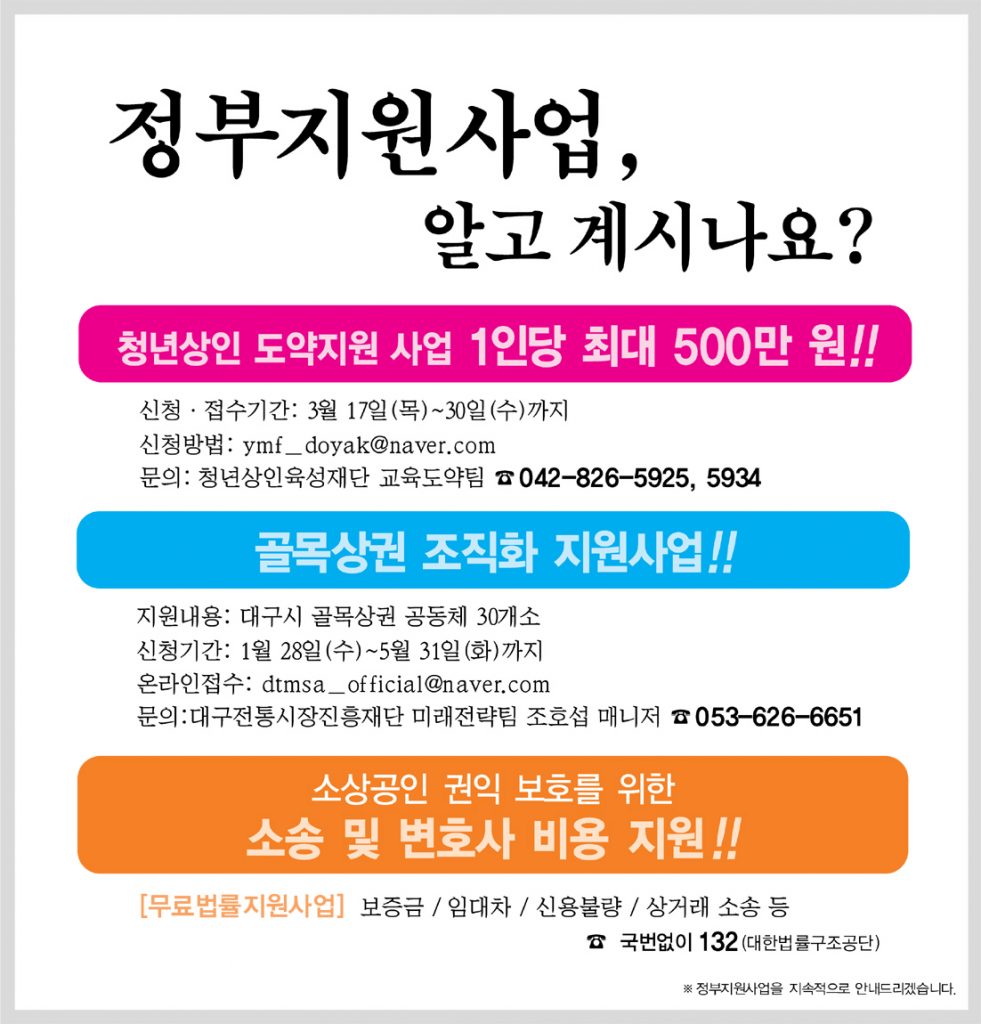 지원내용 : 대구광역시 골목상권 공동체 30개소