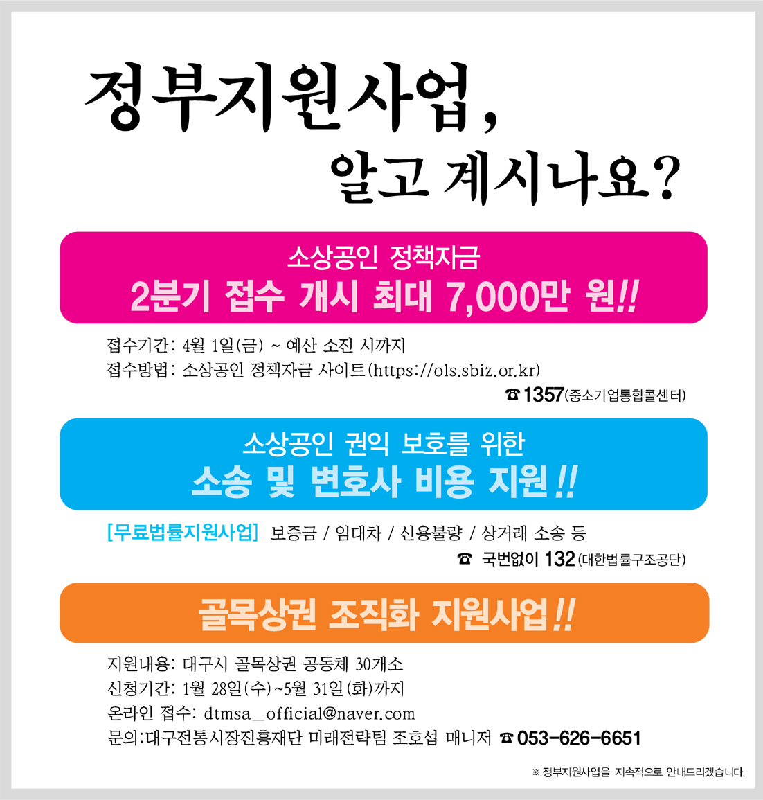 문의 : 대구전통시장진흥재단 미래전략팀 조호섭 매니저(053-626-6651)