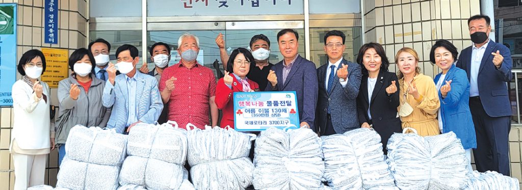 국제로타리 3700지구 손만희 봉사단장은 지난 18일(수) 성주읍행정복지센터를 찾아 저소득 가구에 전달해 달라며 350만 원 상당의 여름 이불 130채를 기탁했다.