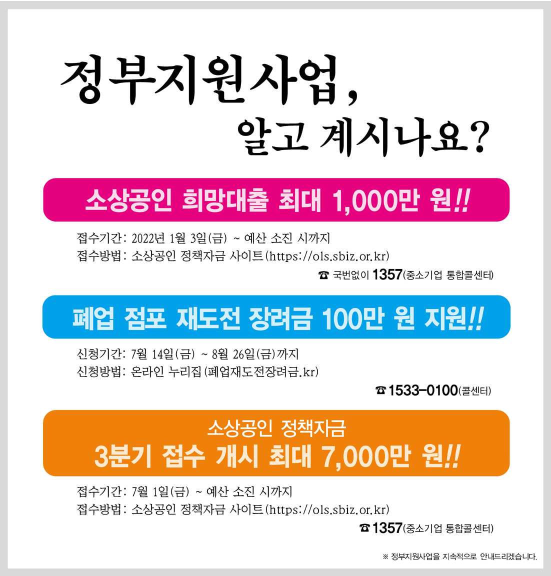 문의처 : 중소기업 통합콜센터(국번없이 1357)