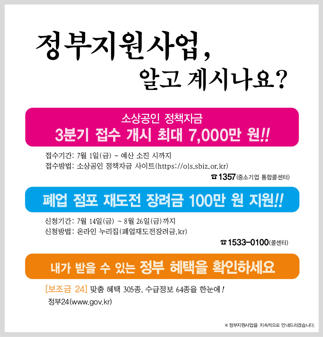문의처 : 중소기업 통합콜센터(1357)