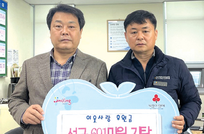 대구 신흥버스(주) 노동조합(지부장 윤종원)는 지난 23일(수) 평소 조합원들로부터 모아둔 성금 691만 원을 이웃돕기 후원금으로 달서구 본리동(동장 석준언)에 기탁했다.