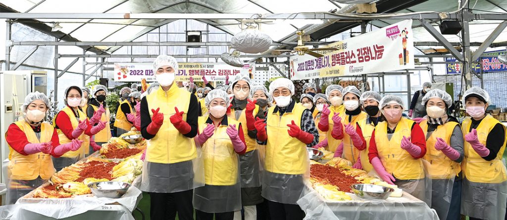 달성군(군수 최재훈)은 지난 29일(화) 자원봉사자 50여 명이 참석한 가운데 옥포읍 기세리 참살이 달성농장에서 ‘2022 따뜻한 겨울나기 행복플러스 김장 나눔’ 행사를 가졌다. 달성군 주최, 달성군자원봉사센터 주관으로 열린 이번 행사에서는 자원봉사자들이 정성을 다해 김장 김치 500포기를 만들어 고향을 떠나 힘들게 생활하는 달성군 관내 새터민 110가구에 전달했다.