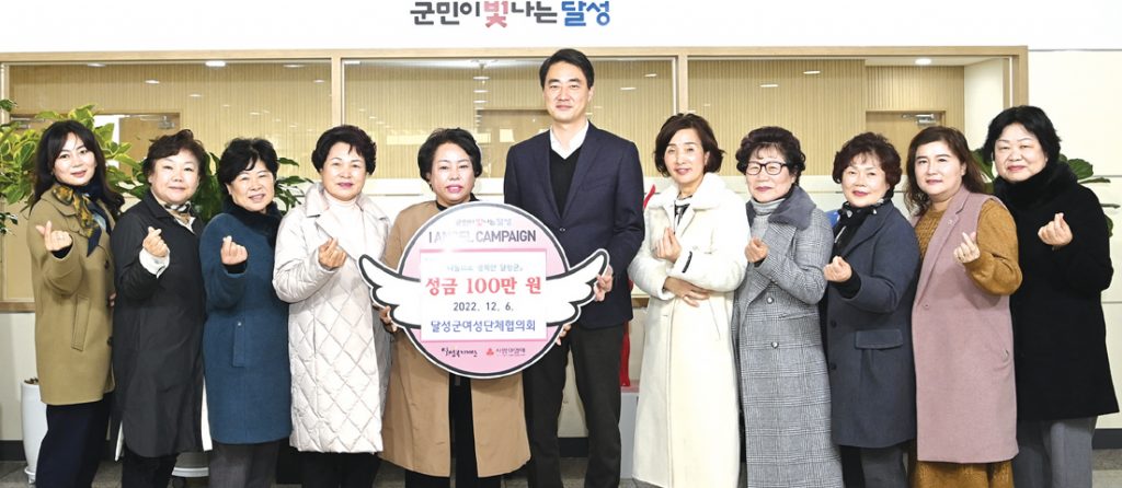 달성군여성단체협의회(회장 남명숙)는 지난 6일(화) 이웃돕기 성금 100만 원을 달성군에 기탁했다.