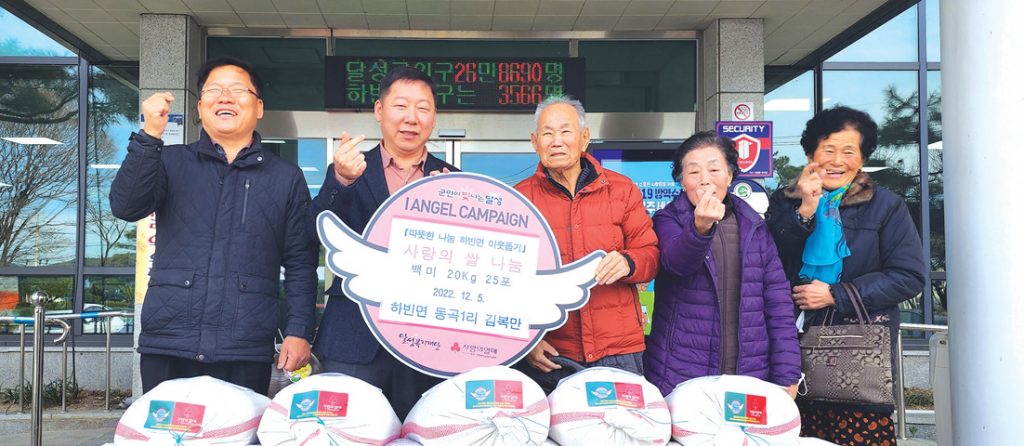 하빈면 동곡1리 김복만 씨가 지난 5일(월) 하빈면 행정복지센터를 방문해 본인이 직접 농사를 지어 수확한 20㎏ 백미 25포(150만 원 상당)를 기탁했다.