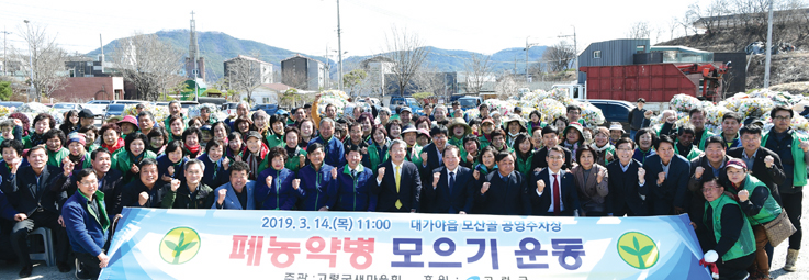 폐농약병 모으기 운동은 밭과 들에 방치된 농약병을 수거해 잔류농약에 따른 피해를 방지하고 자원을 재활용해 범군민 녹색생활화 실천분위기를 조성하고자 시행됐다.