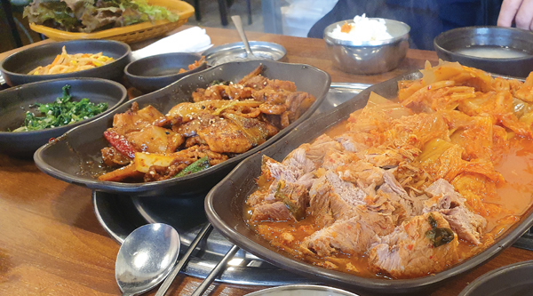 깔끔한 4가지 기본 반찬에 메인 음식인 숙성 잘된 김치로 만든 찜과 돼지고기 두루치기가 함께 나왔다. ‘김치찜’은 함께 요리된 돼지고기의 맛이 일품이다. 두툼한 크기의 돼지고기가 속까지 잘 익어있으며, 숙성된 김치의 양념이 돼지고기까지 잘 배 있어 돼지고기의 느끼함을 김치가 잡아주고, 보들보들한 고기는 양념 잘된 담백한 맛 그 자체이다. ‘두루치기’ 역시 각종 야채와 함께 불향에 단짠단짠의 맛으로 밥과 함께 쌈을 싸서 먹기에 너무 좋은 맛이다.