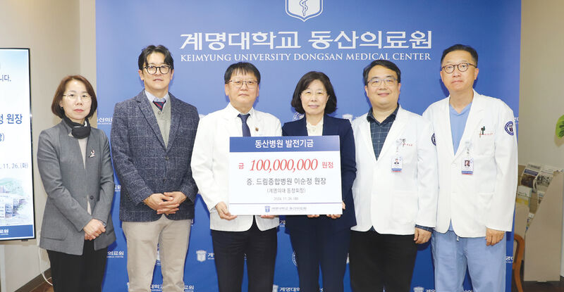 드림종합병원 이순정 원장(계명의대 동창회장)이 지난달 26일(화) 동산병원 발전기금으로 1억 원을 기부했다.