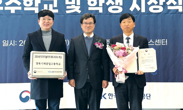 경북기계공업고등학교(이하 경북기계공고)가 고용노동부와 한국산업인력공단이 주관한 ‘2024년 국가기술자격 취득 우수학교 평가’에서 17개 시·도 우수학교 중 1위를 차지하며 고용노동부 장관상을 수상했다.
