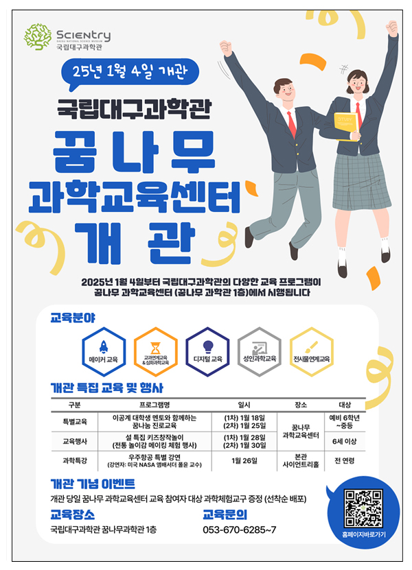 국립대구과학관(관장 이난희)의 꿈나무 과학교육센터가 2025년 1월 4일(토)부터 정식 운영을 시작한다.