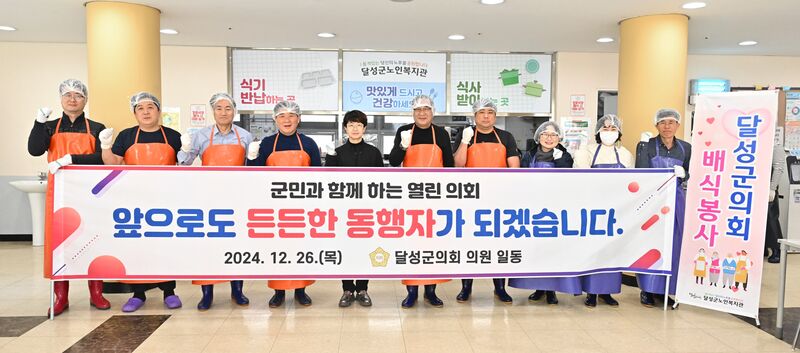 달성군의회(의장 김은영)는 지난 26일, 달성군 노인복지관을 찾아 어르신들을 위한 배식봉사를 펼치며 올 한해 군의회에 보내 주신 성원에 대해 감사 인사를 드렸다.