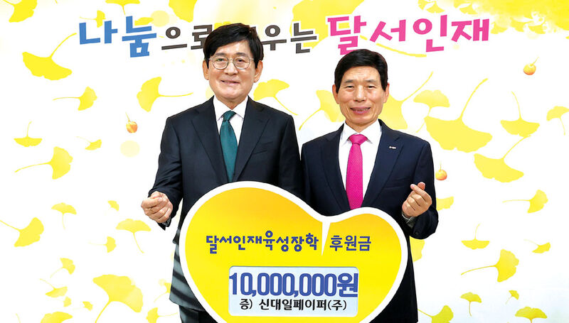 신대일페이퍼주식회사(회장 황진영)는 지난해 12월 26일(목) 지역 인재 육성을 위해 써달라며 1,000만 원의 후원금을 달서인재육성장학재단에 전달했다.