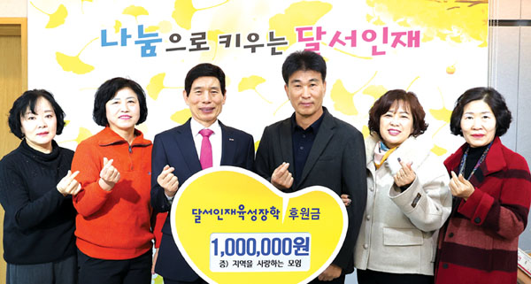 지역을 사랑하는 모임(회장 지용수)은 지난해 12월 23일(월) 지역 인재 육성을 위해 써달라며 100만 원의 후원금을 달서인재육성장학재단에 전달했다.