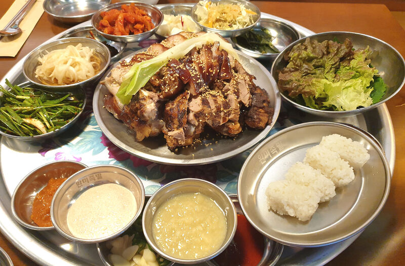 ‘완미족발’의 대표 메뉴인 남도식 한상족발은 족발을 즐기는 방식에 변화를 주는 메뉴로, 푸짐한 양과 다양한 맛을 자랑한다. 족발과 함께 제공되는 18가지 곁들임은 족발의 깊은 맛을 더욱 돋보이게 해주며, 고객의 취향에 맞는 다양한 조합을 시도할 수 있다. 족발을 초밥 위에 얹어 먹거나, 파숙지에 족발을 돌돌 말아 초장에 찍어 먹는 등 이곳에서만 경험할 수 있는 특별한 맛의 조합이 일품이다.