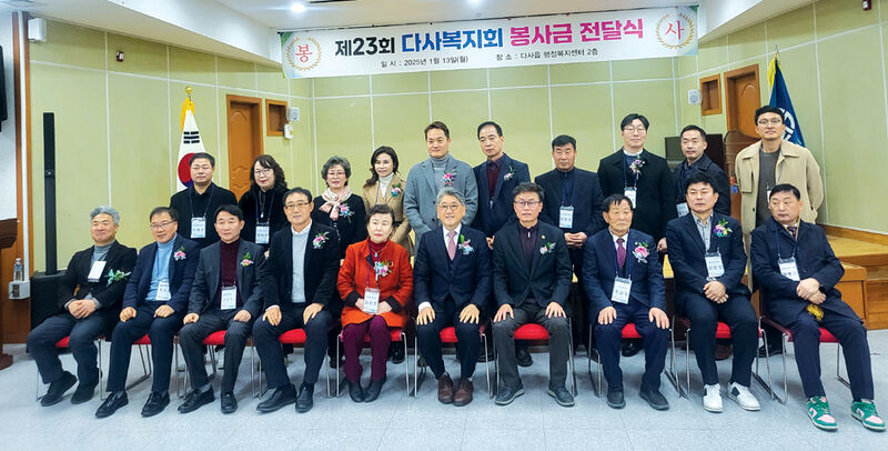 다사복지회(회장 이종철)는 지난 13일(월) 다사읍 행정복지센터 대회의실에서 기관단체장과 회원등100여 명이 참석한 가운데 ‘제23회 다사복지회 봉사금 전달식’을 거행하고, 지역 내 취약계층 10가구에 500만 원(가구당 50만 원)의 봉사금을 직접 전달했다.