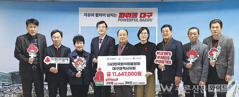 (사)한국외식업중앙회 대구시지회(지회장 김동근)는 어려운 이웃들과 희망을 나누고자 지난달 23일(목) 대구시 동인청사를 방문해 1,100여만 원의 성금을 전달했다.
