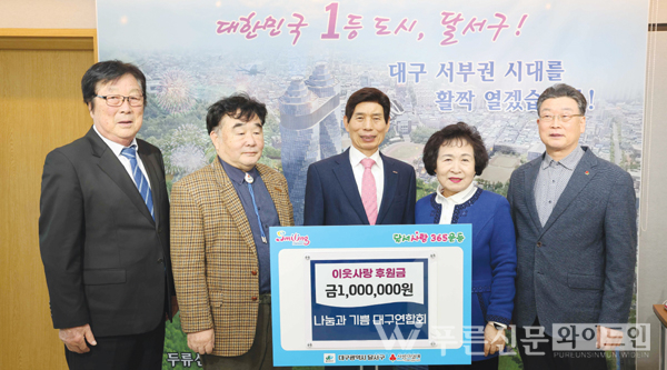 나눔과 기쁨 대구연합회(본부장 한은희 목사)는 관내 어려운 이웃들에게 지원해달라며 후원금 100만 원을 달서구에 기탁했다.