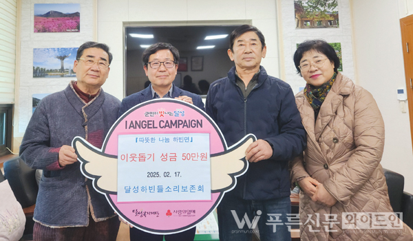 달성하빈들소리보존회(예능보유자 손봉회, 회장 김근준)는 지난 17일(월) 하빈면 행정복지센터를 방문해 지역 내 어려운 이웃들을 위해 성금 50만 원을 기탁했다.