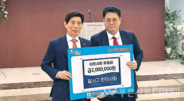달서구 한의사회(회장 이태헌)는 관내 어려운 이웃을 위해 써달라며 200만 원을 달서구에 기탁했다. 달서구 한의사회는 2014년부터 달서구에 ‘우리동네 한방주치의 사업’을 후원하고 있으며, 현재 누적 기부금이 5억을 돌파하는 성과를 보였다.