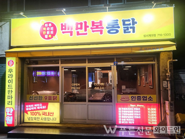 이곳은 맛과 양, 가격 면에서 뛰어난 가성비를 자랑하기 때문에, 한번 방문하면 두 번, 세 번 다시 찾게 되는 단골집이 될 수밖에 없다. 고물가 시대에도 불구하고, 치킨의 맛과 가성비를 모두 잡은 ‘백만복통닭’은 성서계대 근처에서 치킨을 즐기고 싶은 사람들에게 강력히 추천할 만한 장소다.