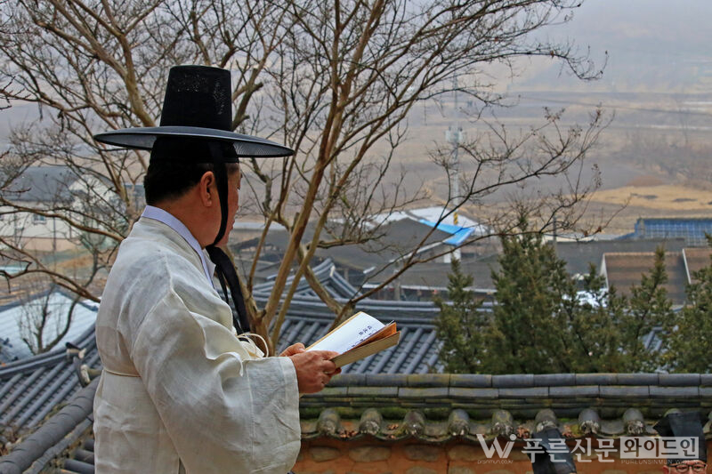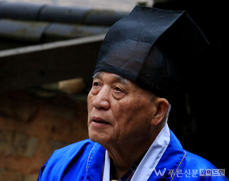 신년 알묘제에서 초헌관을 맡은 명곡서원보존회 박연탁 회장 [사진=이원선 기자]