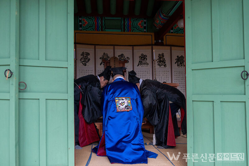 정헌공 금은 박성양 선생에게 제를 올리는 후손들의 모습 [사진=이현아 기자]