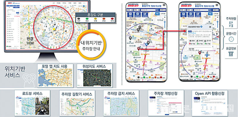대구시는 시, 구·군 등 기관별로 별도 관리하던 공영주차장과 민영주차장 주차정보를 ‘통합주차정보시스템’에서 관리하도록 구축해 시민들에게 유용한 주차정보서비스를 제공할 수 있게 됐다.