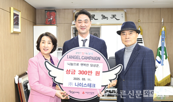 달성군 화원읍 소재 ㈜나이스테크(대표 하후남)는 지난 11일(화) 어려운 이웃을 위해 써달라며 성금 300만 원을 달성군에 기탁했다.
