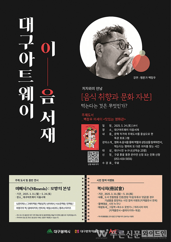 이번 전시품은 현재 대구지역 내에서 판매 중인 독립서점, 출판사, 음반판매점, 뮤지션의 작품으로, 주제에 부합하는 30점 내외의 도서와 음반으로 구성된다. 특히, 큐레이션 안내물은 작품 소개와 판매자·제작자 정보를 수록해 관람객들이 관련 정보를 쉽게 접하고 관심을 가질 수 있도록 제작됐다.