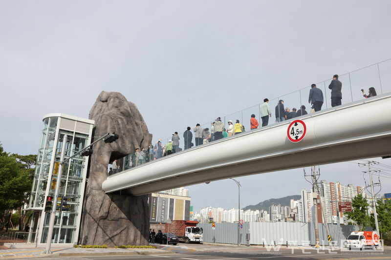 단순한 통로를 넘어 달서구의 고유한 역사성과 상징성을 시각적으로 담아낸 복합 문화 공간으로 완성됐다. 보도교에는 선돌마당공원의 입석 1호와 선돌공원의 입석 3호를 형상화한 대형 조형물이 설치되어, 공간에 역사적 무게감을 더하고 보는 즐거움까지 더했다.