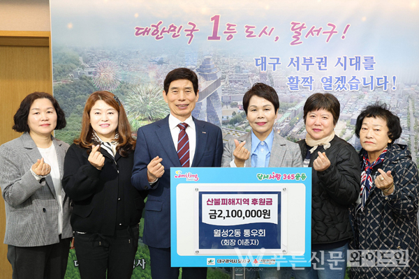 월성2동 통우회(회장 이춘자)은 산불 피해지역 지원을 위한 후원금 210만 원을 달서구에 기탁했다.