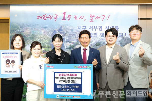 금등어 달서구 직영점(대표 임민경)은 개업식 화환 대신 받은 백미 600kg과 고등어 100마리(총 200만 원 상당)를 관내 어려운 이웃들에게 지원해달라며 달서구에 기탁했다.