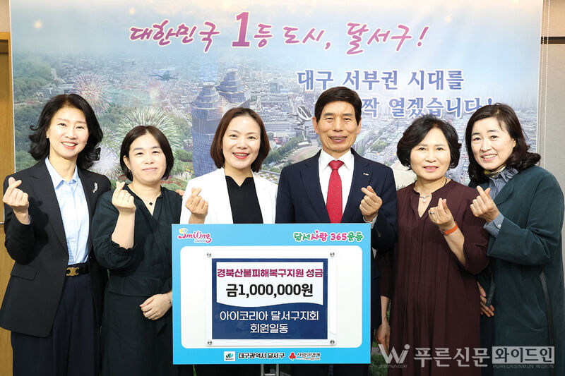 아이코리아 달서구지회(회장 안영란)는 산불 피해지역 지원을 위한 후원금 100만 원을 달서구에 기탁했다.