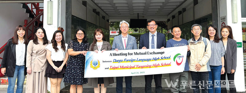 대구외국어고등학교(교장 홍병우)는 지난달 25일(금) 타이완 타이베이시에 위치한 명문 고등학교인 타이베이시립양명고등학교(臺北市立陽明高級中學, 이하‘양명고’)와 국제 자매 결연을 맺고 상호 교류를 위한 협약을 체결했다.