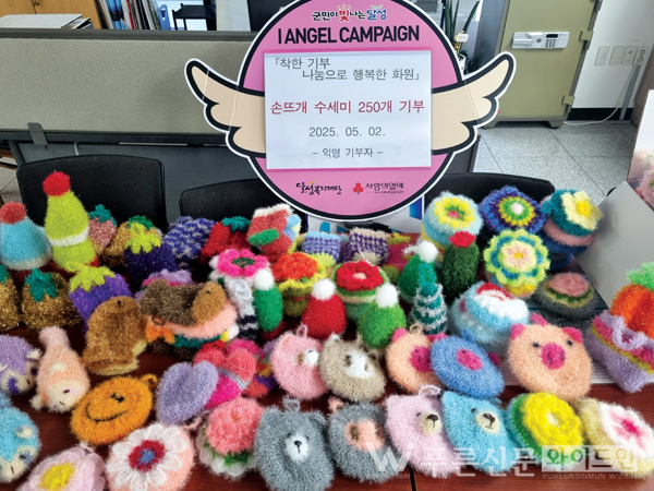 화원읍 행정복지센터에 지난 2일(금) 한 익명의 기부자가 방문해 손수 뜬 손뜨개 수세미 250개를 관내 주민들을 위해 기부했다.
