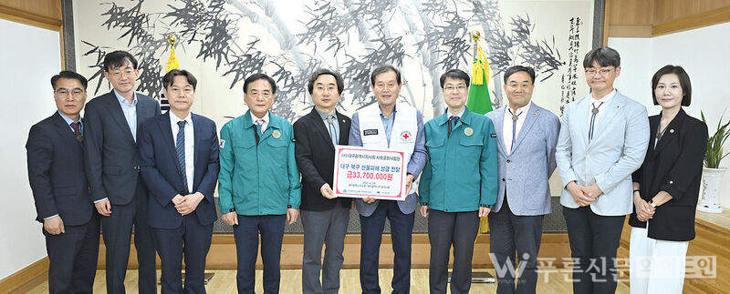(사)대구광역시의사회 사회공헌사업단(대표이사 민복기)은 지난달 28일(월) 발생한 대구 북구 노곡동 일대 산불로 인해 피해를 입은 이웃들을 위로하고 사랑과 온정을 나누고자 29일(화) 오후 3시 20분 대구시청 동인청사에서 김정기 대구광역시장 권한대행, 이만규 대구광역시의회 의장, 민복기 대구광역시의사회 회장, 박명수 대한적십자사 대구지사 회장 등이 참석한 가운데 성금 3,370만 원을 대구시에 전달했다.