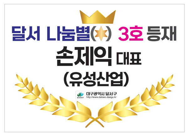 달서구(구청장 이태훈)는 10년 연속 기부로 이웃사랑을 실천해 온 손제익 대표(유성산업)를 ‘달서 나눔 별(★)’ 3호로 등재했다.