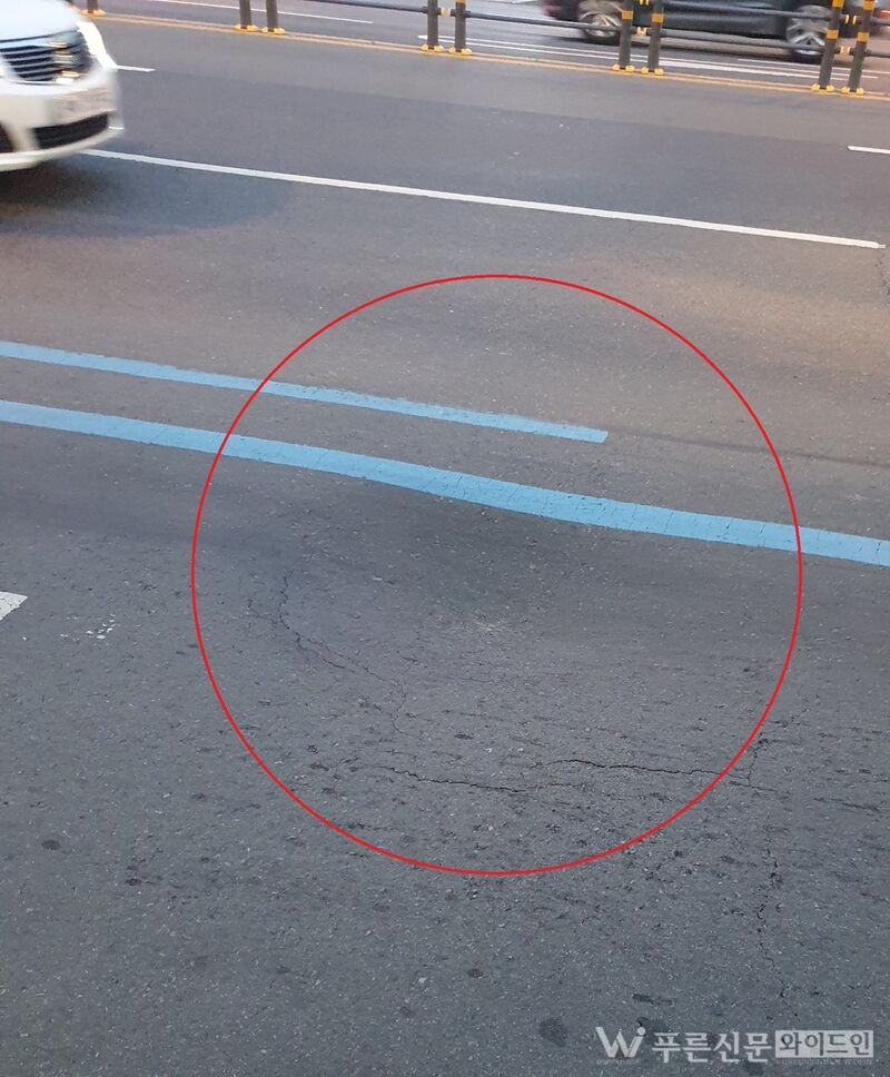 남구청에 따르면 지난 13일 오후 6시 30분경 해당 도로가 지름 약 0.9m, 깊이 15cm 가량 움푹 꺼지는 부분 침하가 발생했다. 이로 인해 오토바이를 타고 지나던 60대 남성 A씨가 넘어져 경상을 입고 치료를 받았다.