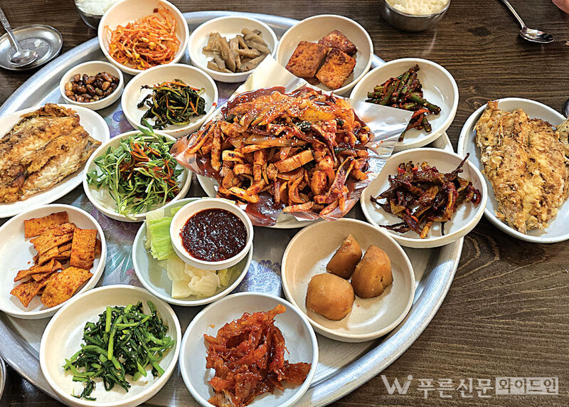 이 식당의 숨은 주인공은 ‘기본 반찬’이다. 10가지가 넘는 반찬이 정갈하게 차려지며, 모두 매일 손수 만든 것들이다. 고등어구이는 메인 메뉴라 해도 손색없을 만큼 짭조름하고 비린내 없이 깔끔한 맛을 자랑한다. 진미채, 콩나물무침 등 단순한 반찬 하나하나에도 정성이 깃들어 있어 손님들의 만족도가 높다.